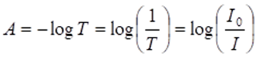 Transmitancia T je pomer intenzity absorbovaného žiarenia I a intenzity pôvodného žiarenia I0: